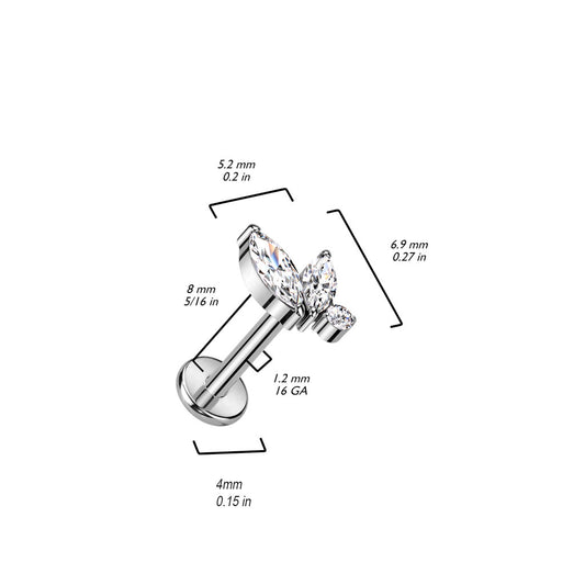 Labret With Descending Bezel Set 3 CZ Curved Top