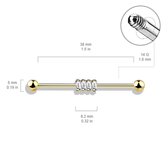 Baguette CZ Crown Industrial Barbell