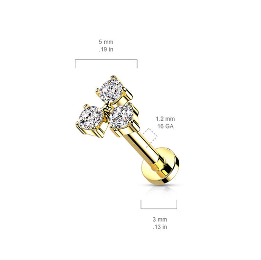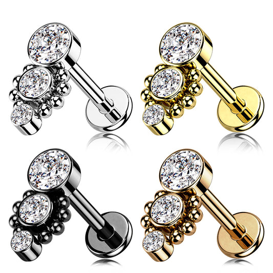 Labret With Descending Bezel Set 3 CZ Curved Top