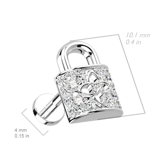 CZ Paved Lock Top on Flat Back Stud for Labret