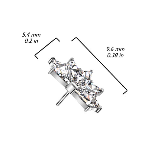 Threadless Push In 3 Diamond Shaped CZ Spears Top
