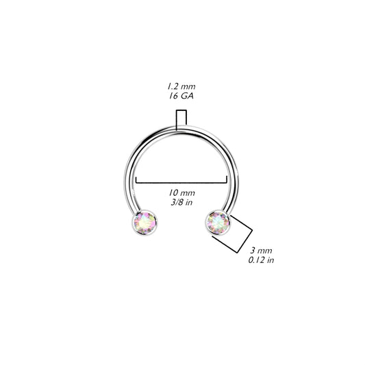 Threadless Horseshoe With Forward Facing Bezel Set CZ Ends