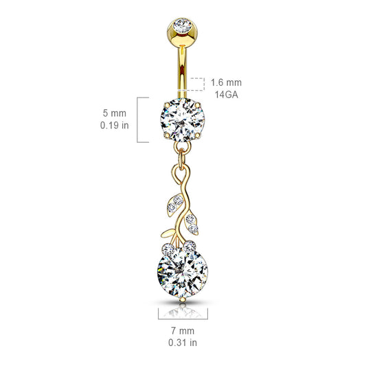 Gemmed Leafs with Round CZ Dangle Navel Bar