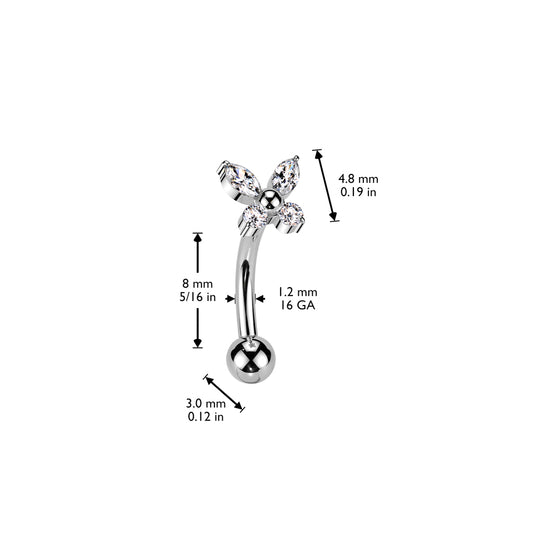 Threadless Curved Barbell With 3 Marquise CZ Leaf Top