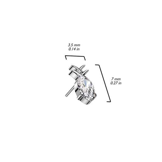 Threadless Push In Pear CZ Between 2 Marquise CZ Top