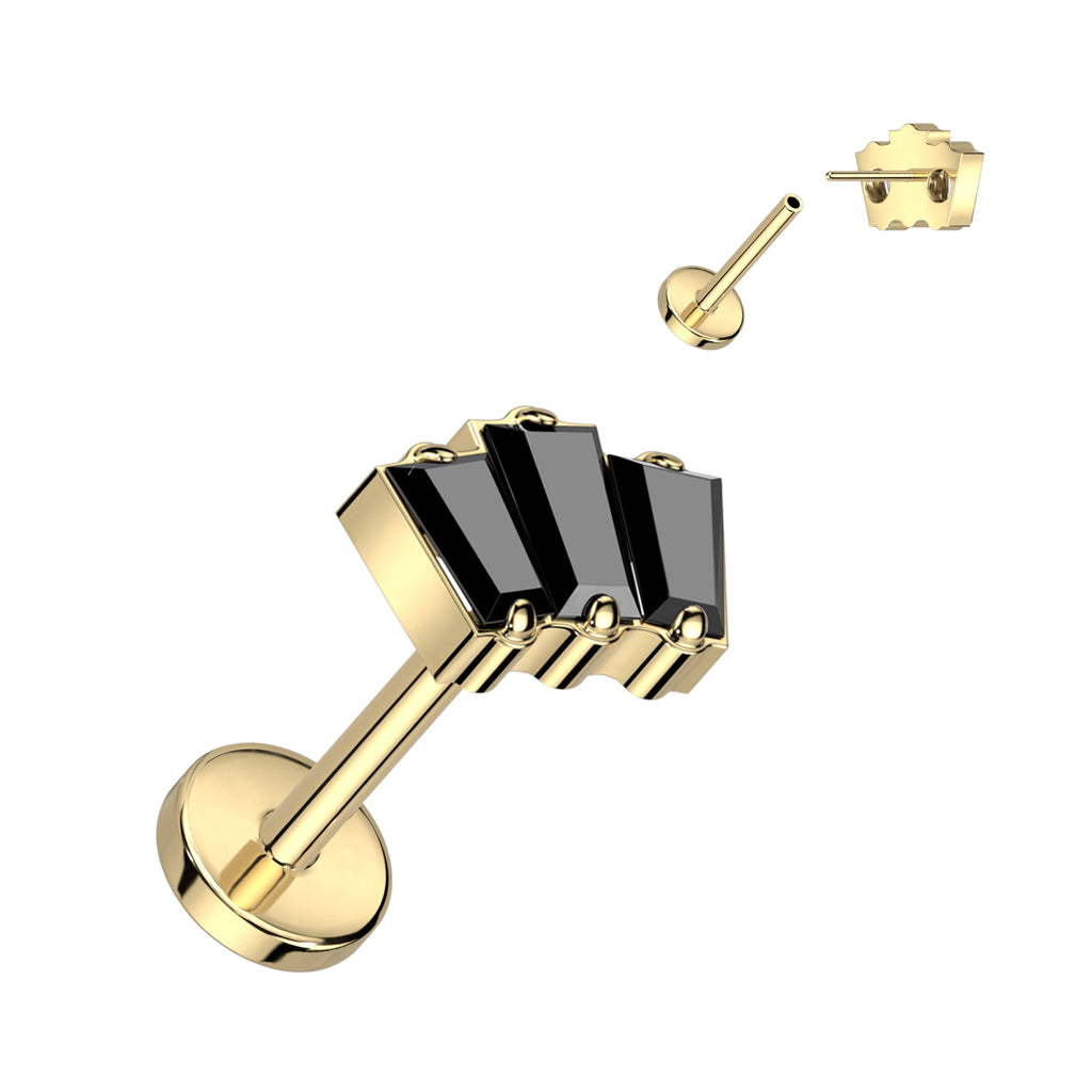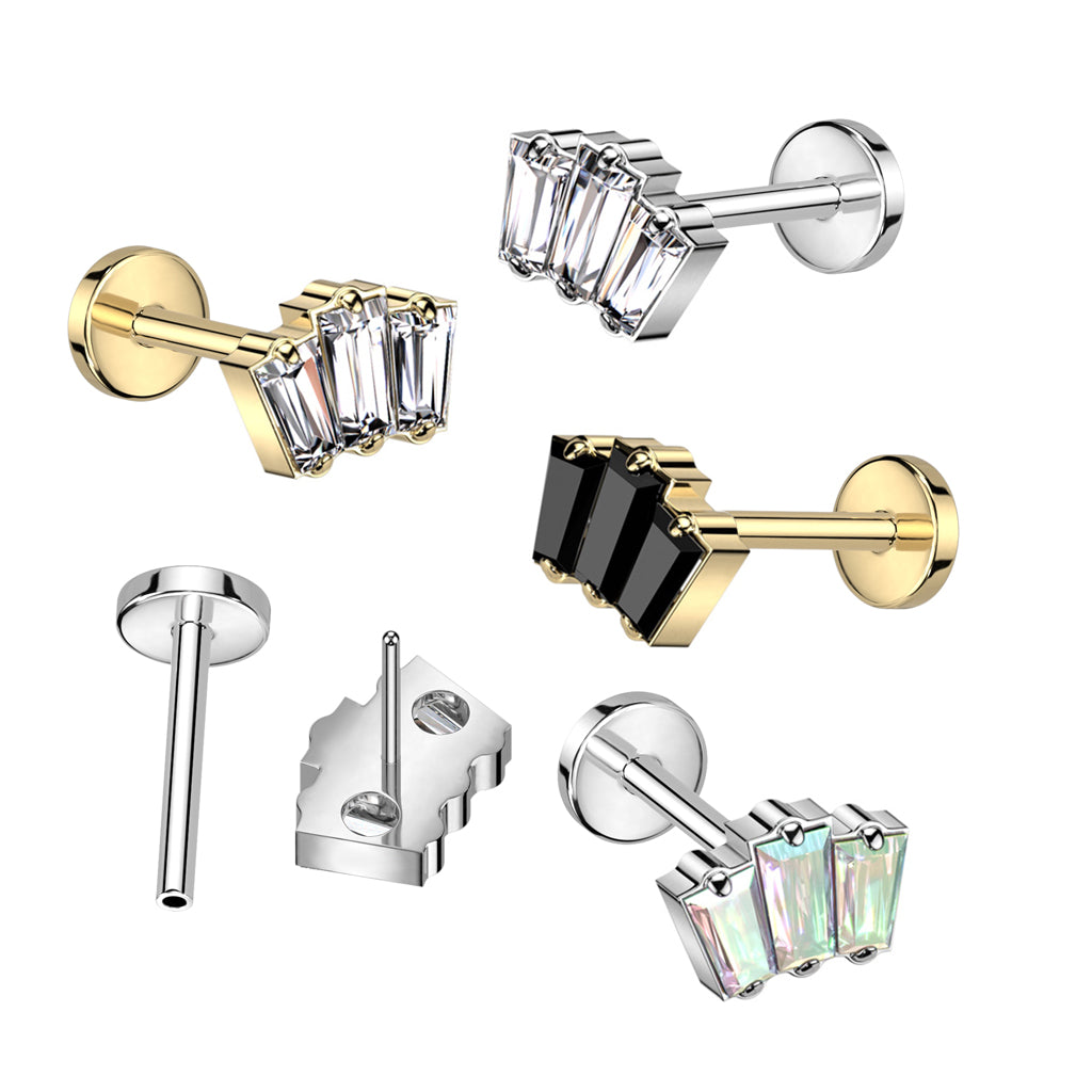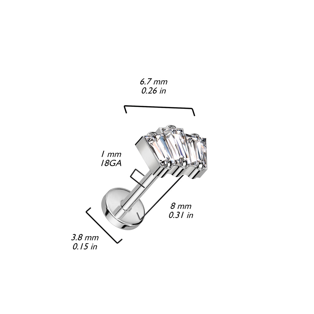 Threadless Labret With 3 Baguette CZ Top