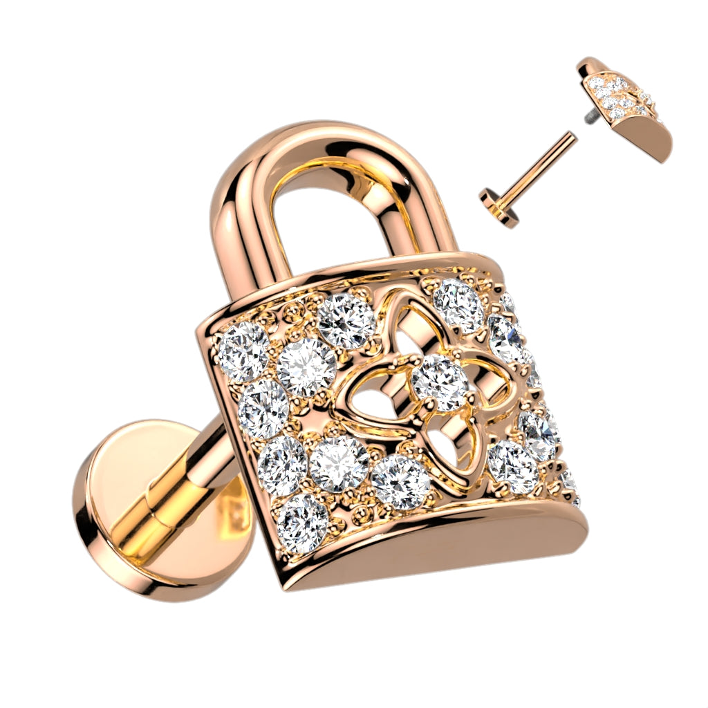 CZ Paved Lock Top on Flat Back Stud for Labret