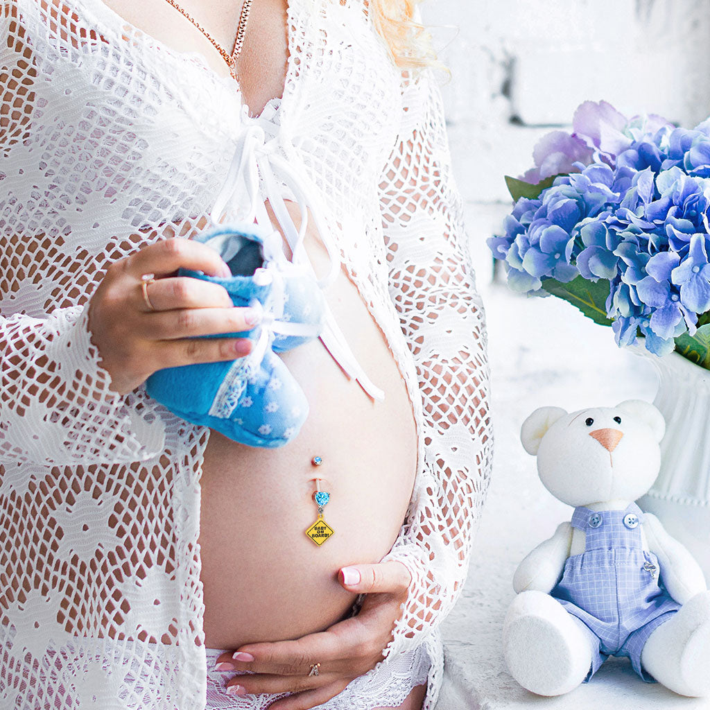 Double Jeweled Prong Set Heart CZ with Baby on Board Sign Dangle Pregnancy Bioflex Navel Bar