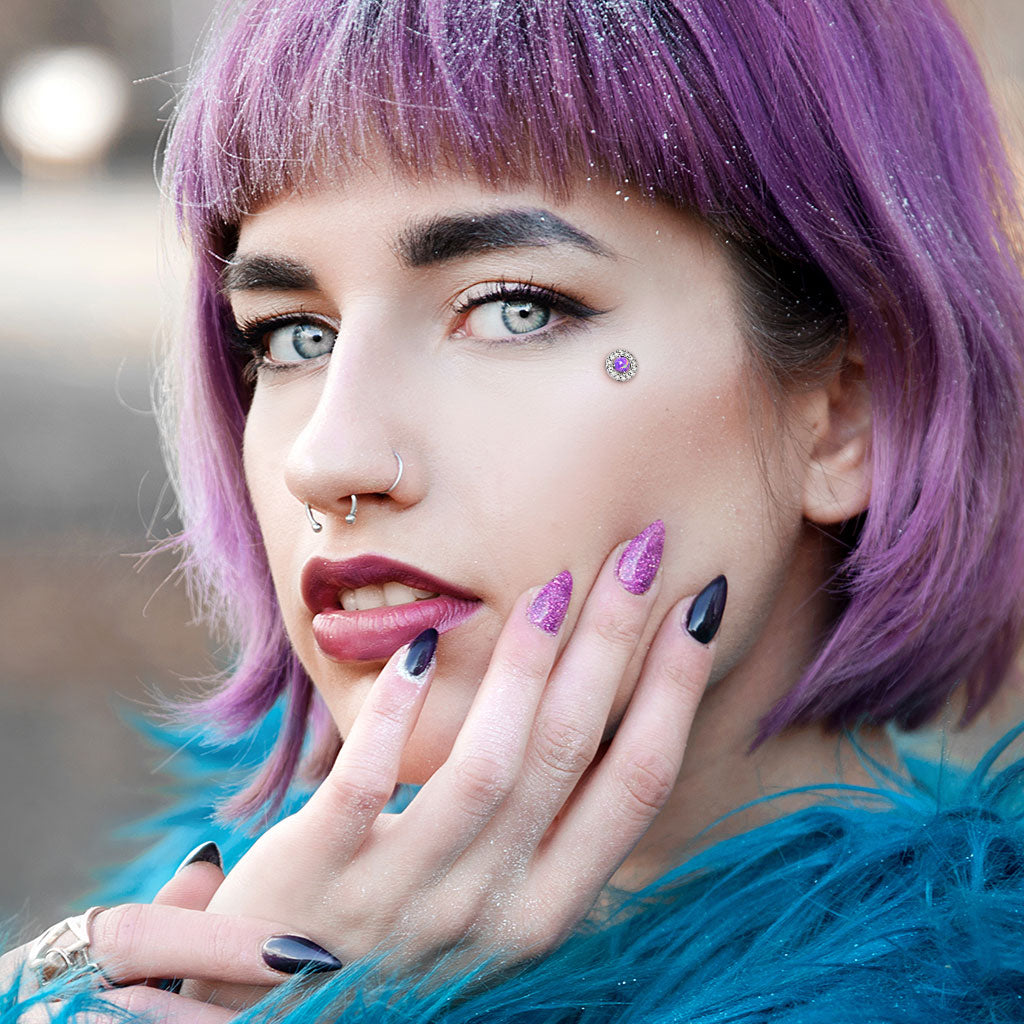 Prong Set Opal Center with CZ Paved Surrounding Dermal Anchor Tops